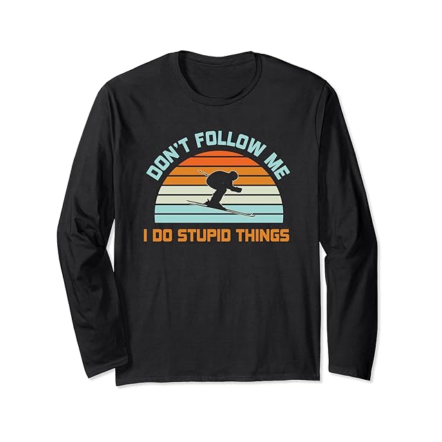 スキーはついてこないでバカなことするよおかしい 長袖Tシャツ
