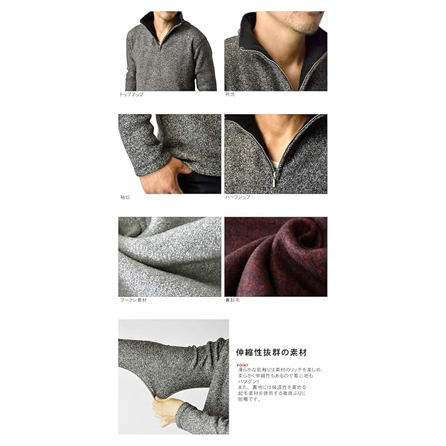 [アルージェ] ハーフジップ ブークレ フリース ニット セーター 裏起毛 柔らかい ふわふわ メンズ / D6G / M 54ダークオレンジ
