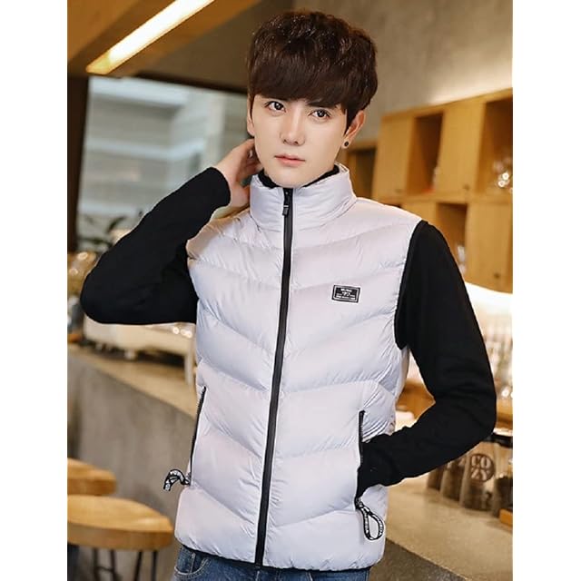 LittleKK ダウンベスト メンズ 中綿ベスト 軽量 防寒 立ち襟 無地 ジャケット ベスト M-4XL 5色展開 春 秋 冬 6708 (M, グレー)