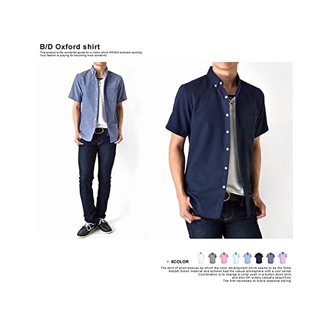 (アローナ)ARONA シャツ メンズ オックスフォードシャツ カジュアル 半袖 C/M1.5/ 81パープル L