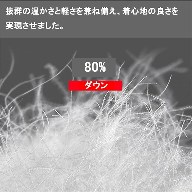 80%の良質ダウンを利用して、驚くほどの薄く、軽く、そして暖かい!インナーダウンに着てもすっきりとして着ぶくれしにくい
