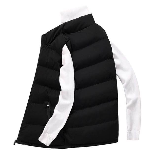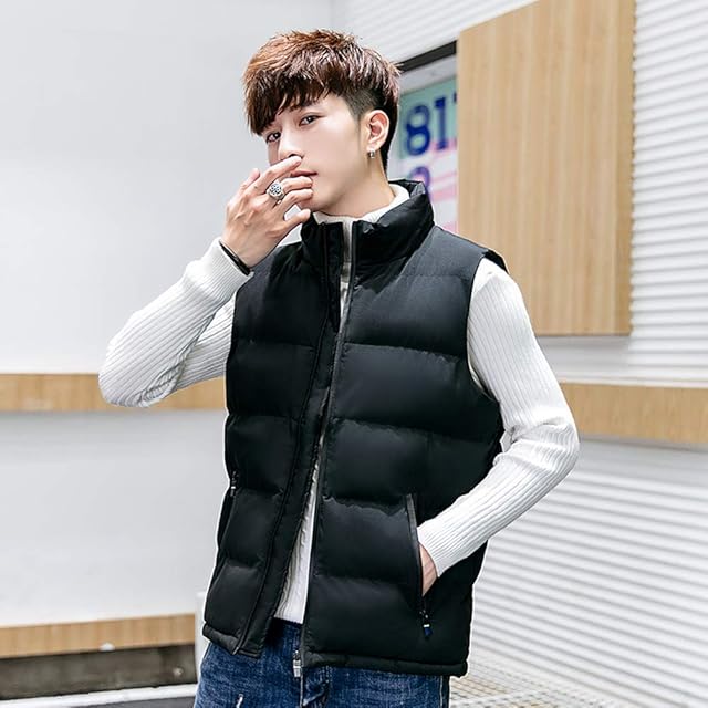 TFLMJ ダウンベスト メンズ 中綿ベスト 立ち襟 無地 防寒 秋冬春用 ジャケット ベスト 3色5サイズ展開 春 秋 冬 (ブラック, XXXL)