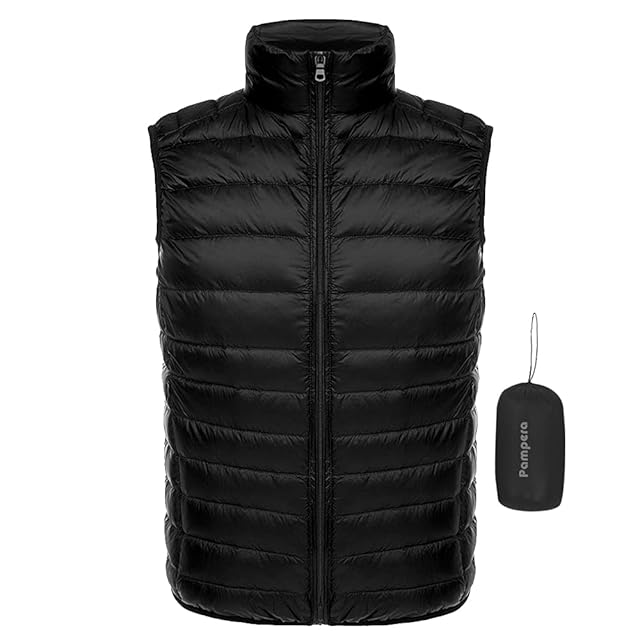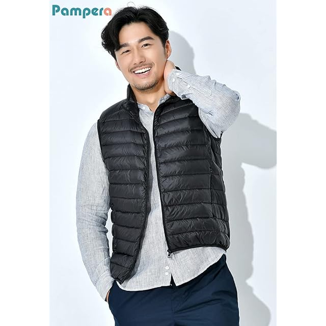 Pampera(パムペラ) ダウンベスト メンズ 軽量 防風 防寒 暖かい ウルトラライト インナーダウン 便利な収納袋付き P740 (L, 襟•ブラック)