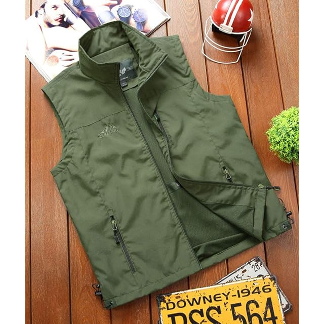 [BARYPORY] メンズ アウトドアベスト メッシュ 速乾 多機能 撥水 軽量 撮影 登山 ノースリーブ ハイキング フィッシング 釣り 旅行 登山 通勤 春 夏 秋 (JP, アルファベット, 5XL, グリーン)