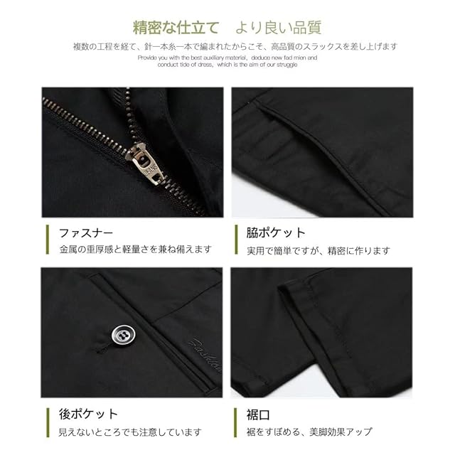 [Daycloth] スラックス メンズ スーツ ズボン ストレッチ ビジネスパンツ 細身 通勤 美脚 夏 秋 イージーケア ロングパンツ スリム ノータック 黒 紺 (ブラック, 30) …