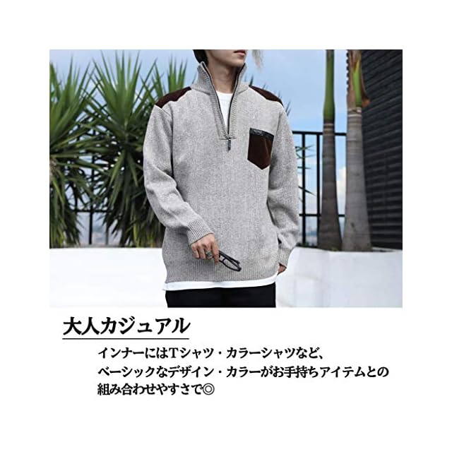 [キャプテン・ケイ] ニット プルオーバー セーター ハーフジップ 長袖 4カラー M~3XL メンズ ニットセーター ニットプルオーバー パーカー トレーナー カットソー カーディガン 長袖ジップ ジップ オフィスカジュアル プルオーバーシャツ アウター ウィンドブレーカー キャンプ スウェット スノーボード スポーツ 無地 オシャレ カッコイイ シンプル ストリート ベージュ M