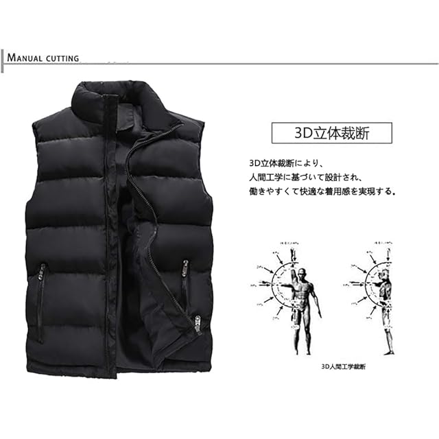 [COZOEN] ダウンベスト メンズ ベスト 中綿ベスト アウター 冬 防寒 防寒対策 保温性 暖かい 軽量 無地 カジュアル 重ね着 ジップアップ ポケット付き 大きいサイズ M-6XL展開
