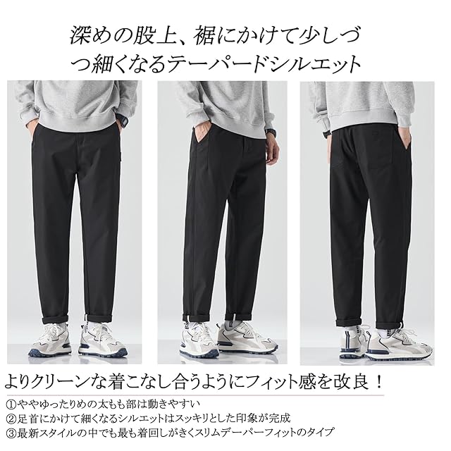[YUSHOW] チノパン メンズ スキニーパンツ スリム ストレッチ ゴルフパンツ カジュアルビジネス ズボン テーパード 大きいサイズ スラックス 細身 美脚 黒パンツ34 24A#ブラック