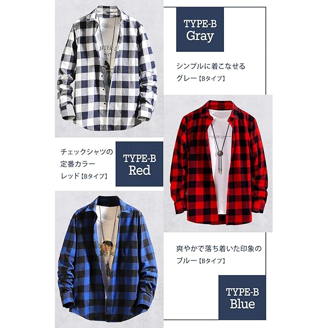 [RIDICOLO] [リディーコロ] メンズ チェック シャツ ネルシャツ トレンド チェック柄シャツ チェック柄 長袖シャツ トップス しゃつ メンズシャツ シャツブラウス シャツジャケット カジュアル コットン 秋 秋服 秋物 秋春 春 春服 春物 大人 オックスフォードシャツ アウター おしゃれ シンプル カッコいい お洒落 ジャケット カッコイイ カジュアル タイプB グレー M