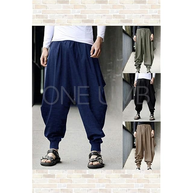 [ワン アンブ] ビッグ シルエット ワイド アラジン パンツ 綿麻 カジュアル お洒落 9分丈 テーパード M ~ XL メンズ OU89 NV XL