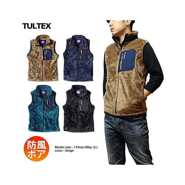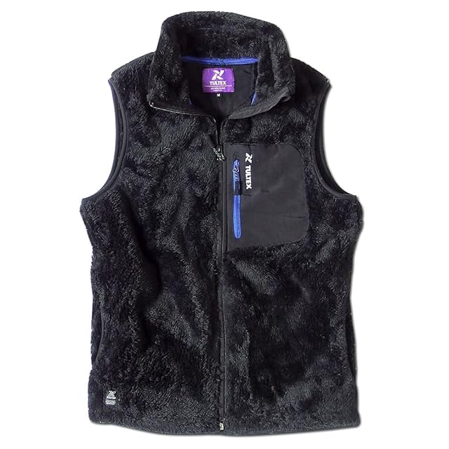 [EVERSOUL] TULTEX ベスト 防寒 防風 ボア フリース アウトドア 釣り キャンプ ワークウェア 暖かい ZIP モコモコ ウォーキング メンズ ブラック Mサイズ