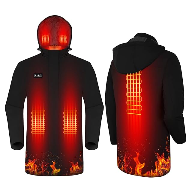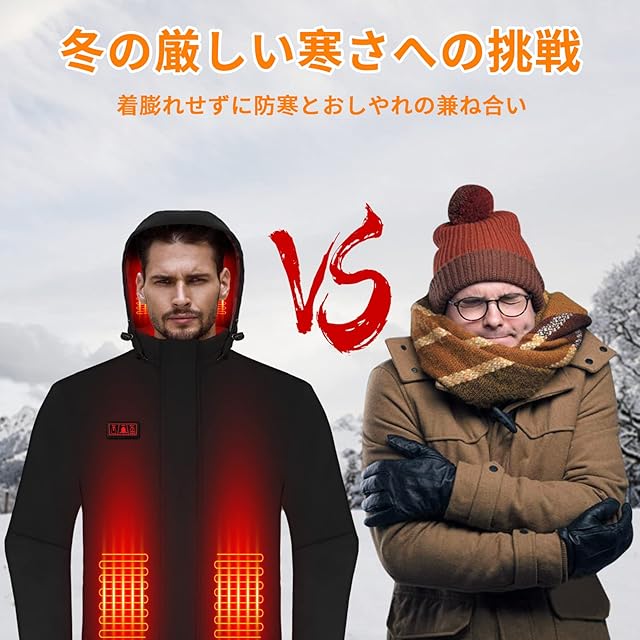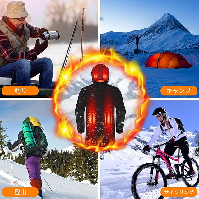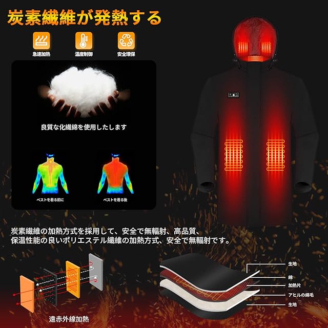 【電熱ウェア 冬ぬくぬく 】:アウトドア防寒着の便利な特徴をを兼ね備える同時に、折り畳み可能な帽子、超長い後ろすそがあり、寒い冬の防風、防寒対策になり、寒がり屋でも楽々なお出かけができます。母の日や父の日、敬老の日、感謝祭、クリスマス、誕生日などの特別な日に両親、家族、恋人、友達、スタッフへの贈り物としておすすめです。