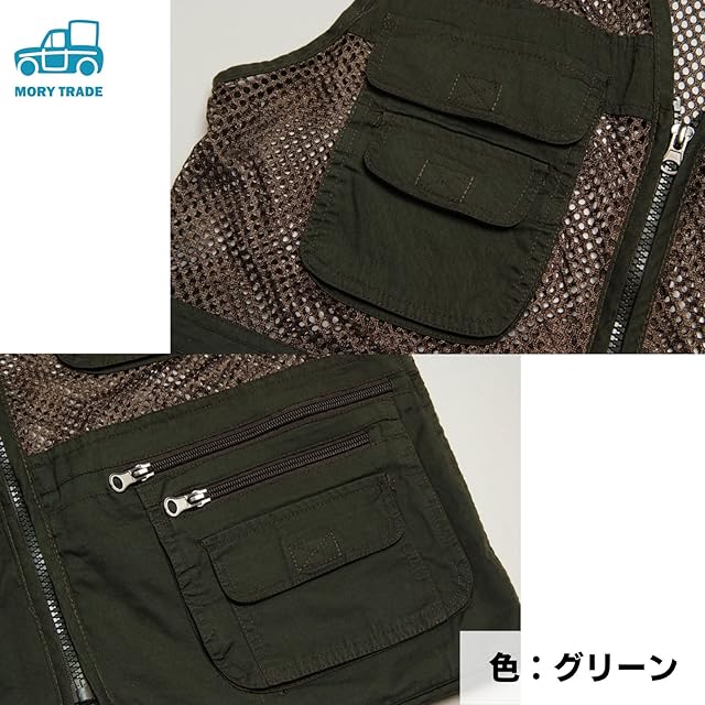 morytrade メッシュベスト メンズ フィッシング カメラマン アウトドア 薄手 軽量 夏用 (2XL, グリーン)