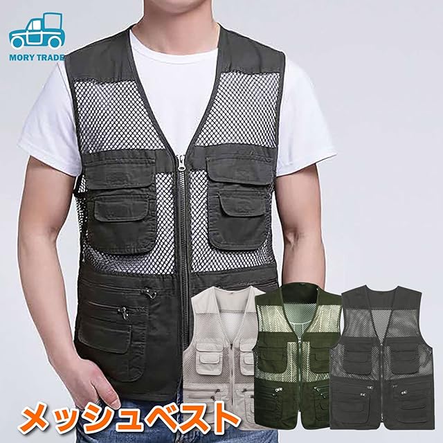 アウトドアベスト・フィッシングベスト・カメラマンベストとして人気のメッシュベストです。通気性のいいメッシュ素材をベースに多数のポケットを装備!