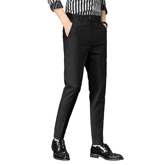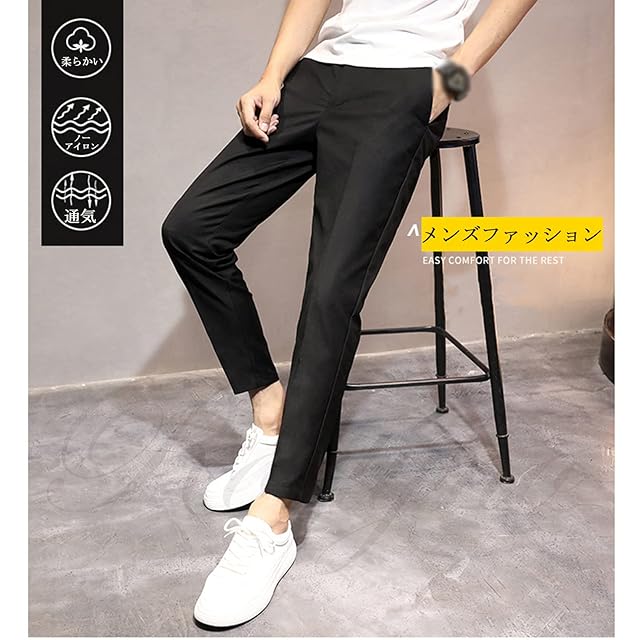 [Rortyno] スラックス メンズ スキニー アンクル ロングパンツ テーパード スリム ビジネススラックス 9分 細身 チノパン カジュアルパンツ ノータック 黒-ロング丈 29