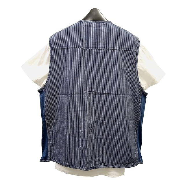 [MEN'S FINE SELECTION] 綿麻 メッシュベスト 冷涼 通気 多機能 多ポケット 作業着 おしゃれ 父の日 プレゼント (ブルーM)