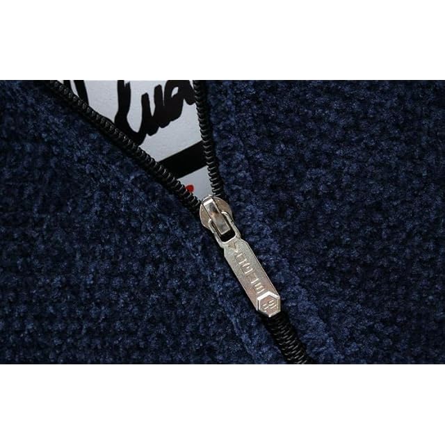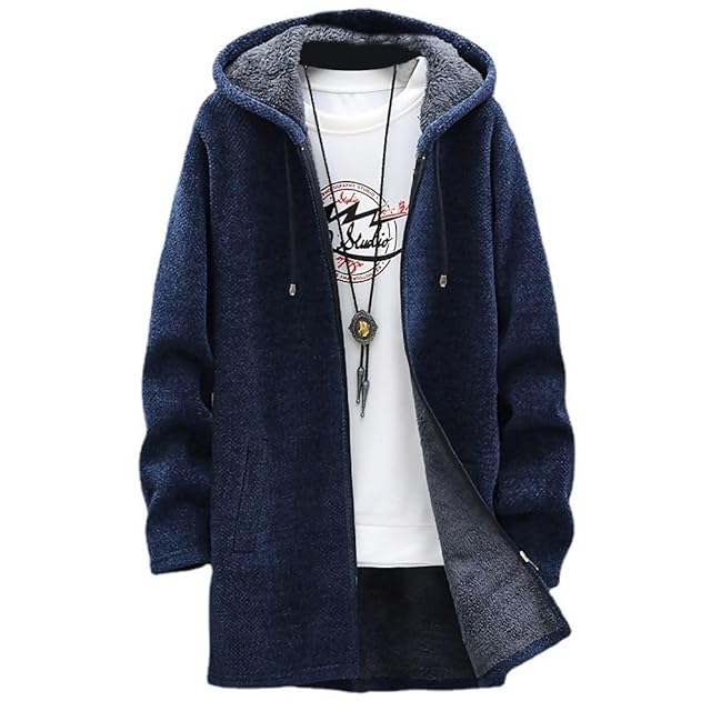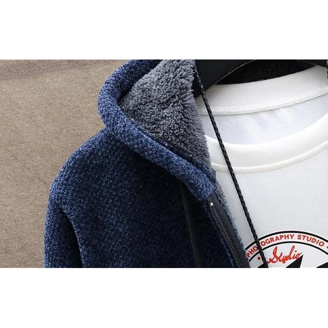 [アスペルシオ] フードつき ジップアップ ロングコート ビター系 お洒落 裏起毛 アウター メンズ 長袖 裏ボア カーディガン ジップアップパーカー ジャケット ストリート系 暖かい ジッパー カッコいい b系 コート ブルゾン ニット デザイン 裏毛 防寒防風 ファッション v系 ボアコート カジュアルコート ファスナー ロングジャケット ニットジャケット ボアジャケット (L) ネイビー