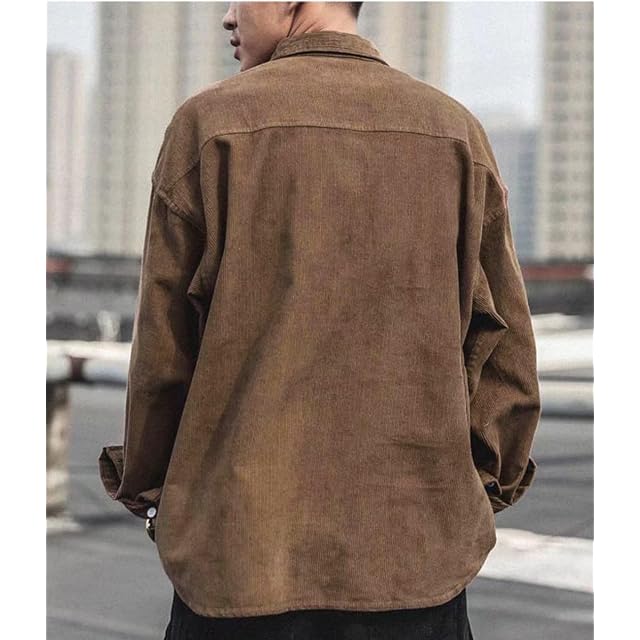 [チーアン Tiann] コーデュロイ シャツ メンズ 秋服 バンドカラー 薄手 シャツジャケット ポケット付き ブラウス ボタンダウン トップス カジュアル シャツ 羽織り 無地 ライトアウター 春 秋