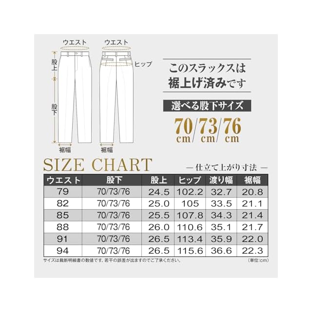 【裾上げ済みですぐに使える】オフィス・飲食店等のユニフォームとして、また急な冠婚葬祭用としても着用いただけます。 【サイズ】 選べる股下70/73/76cm。メーカーやブランドによりウエストサイズが表記より実寸が大きい場合があります。弊社は表記サイズで生産です。ご購入の際にはご確認下さい。