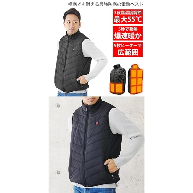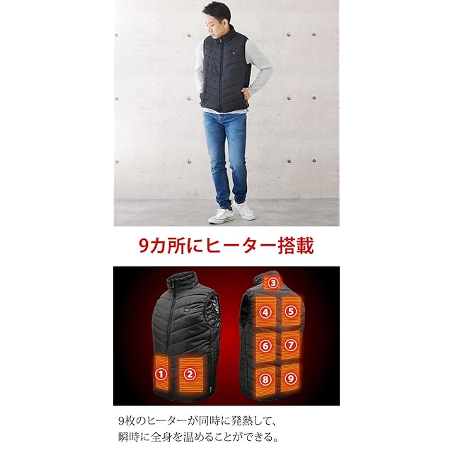 [ラドウェザー] 電熱ベスト 防寒着 9個のヒーターで暖かい 4層構造 5秒で熱が循環 発熱 加熱 メンズ レディース ヒーター インナー 作業着