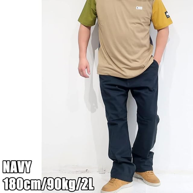 大きいサイズ チノパン カーゴ メンズ ゆったり 8L 7L 6L 5L 4L 3L 2L ブラック ベージュ カーキ 大きめ ウエストゴム 年間定番 春 夏 秋 冬 ミリタリー 10000691 (2L, NAVY)