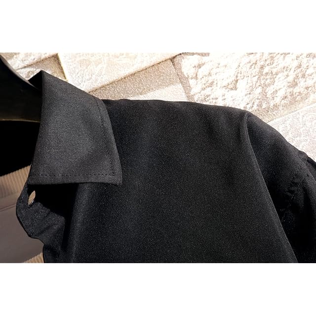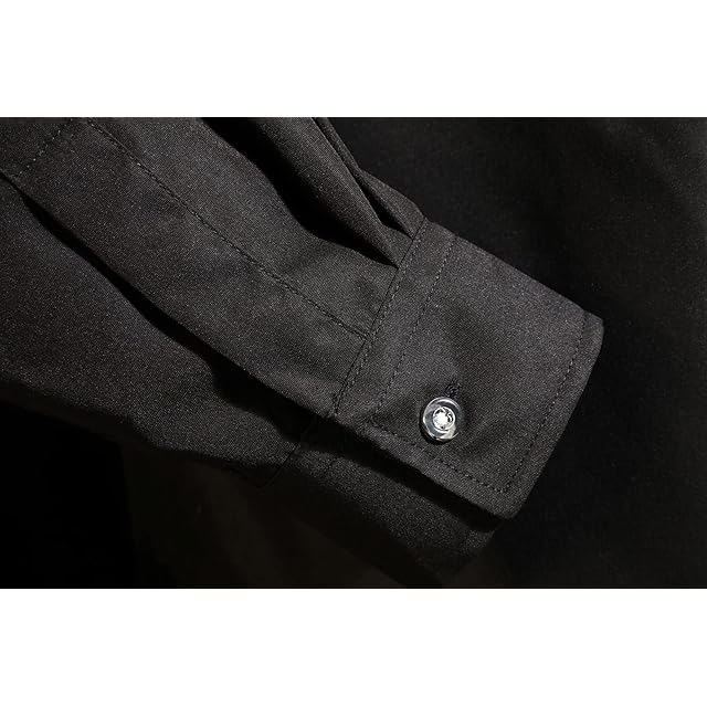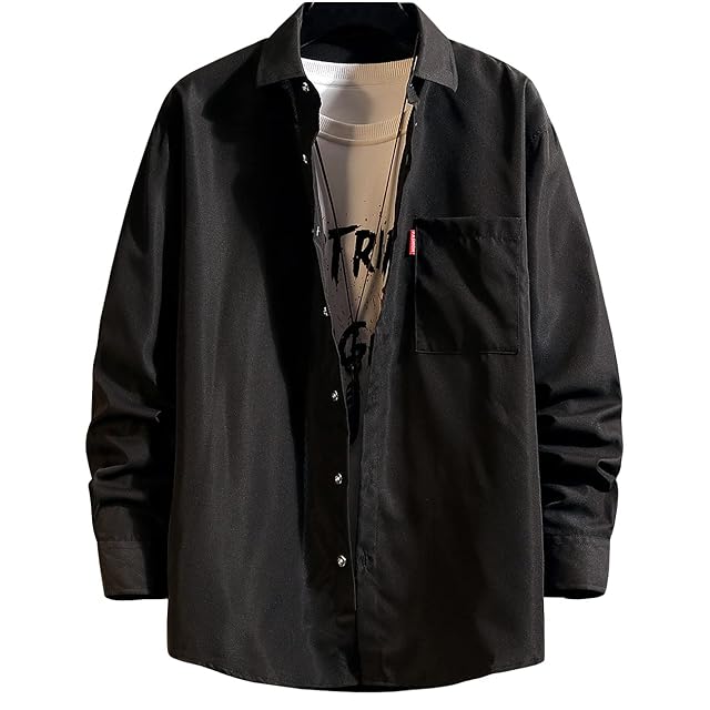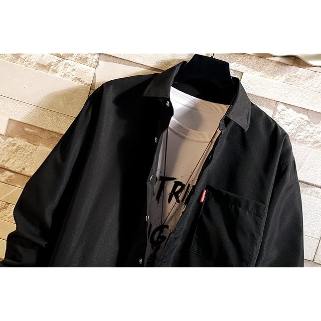 [EASTEMPO] メンズ シャツ 長袖 春 カジュアル ビジネス おしゃれ 無地 ゆったり 薄手 大きいサイズ (JP, アルファベット, M, ブラック)