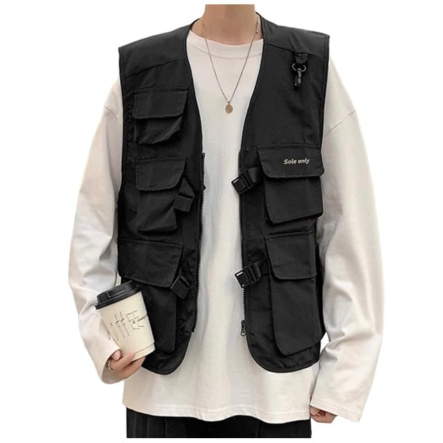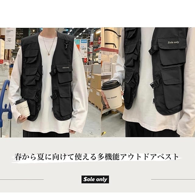 [$ole only]ソールオンリー 薄手で使いやすい フィッシングベスト ベスト M L XL XXL カメラマンベスト 多機能 ポケット多い カーゴベスト 春 夏 秋 ミリタリー アウトドア おしゃれ 男女 メンズ ウィメンズ カジュアルベスト (XXL)