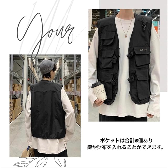 ✅ポケットが合計5個あり、夏場で薄着の時にカバン等を持たずに、鍵や財布を入れることが出来る便利なカジュアルベストです。