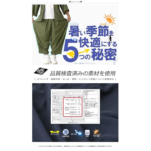 [LIMITED SELECT] (リミテッドセレクト) 接触冷感 ゆったり バルーンパンツ メンズ UPF50+ 撥水 ストレッチ ラクールドライ ワイドパンツ RH1-1123 M A2-ライトカーキ