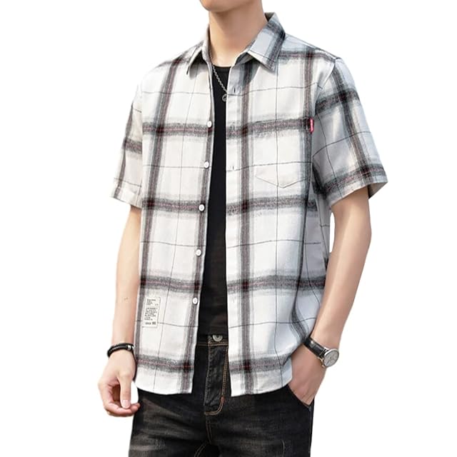 [Anzn] シャツ チェックシャツ メンズ 長袖 半袖 カジュアル オシャレ大きいサイズ シンプル ボタンダウン 春夏秋-duan White-L