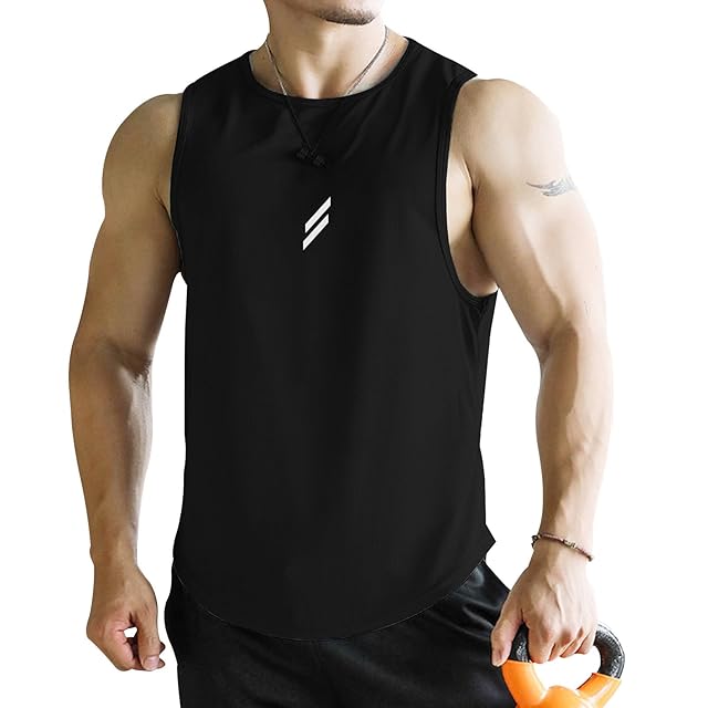 [iEndyCn] メンズ タンクトップ トレーニング ノースリーブ フィットネスTシャツ 筋トレ スポーツインナー 袖なし スポーツウェア ボディビル マッスルフィット 吸汗速乾 (ブラック,Large)