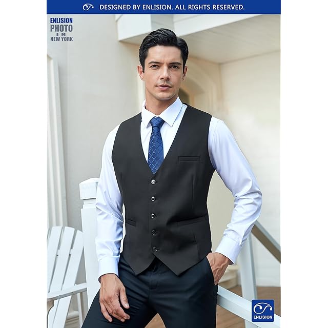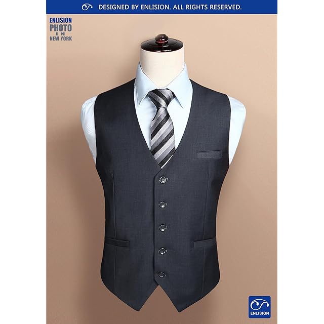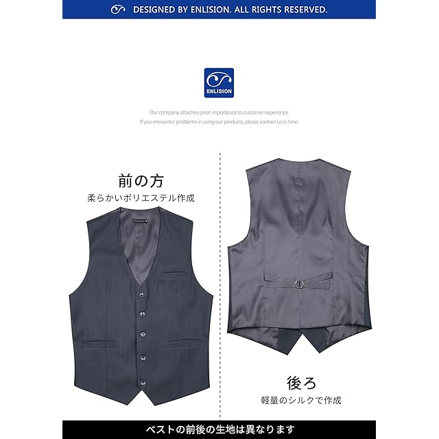 [Enlision] グレー ベスト メンズ 結婚式 スーツベスト 大きいサイズ 袖無し vネック ジレ 無地 フォーマル 紳士 男性 礼服 日本Mサイズ相当 V-04