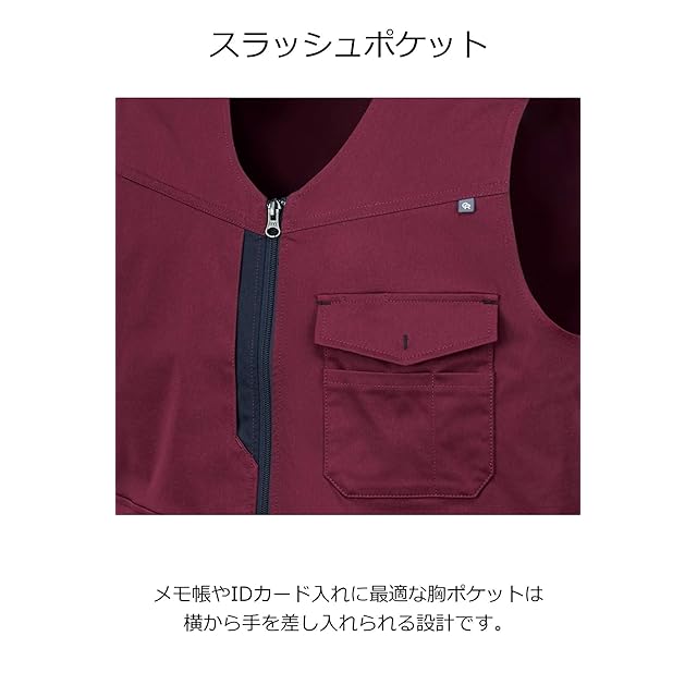 高いストレッチ性が、動きやすく快適な着心地を実現。 光沢を抑えた、ポリエステル100%のツイル素材シリーズ。シャツやベスト、パンツといったベーシックなアイテムを一通りラインアップしているので、セットアップでの着用が可能。これまでにない新しいセットアップスタイルを提案します。 4か所にポケットを配置し、さまざまなツールをスマートに収納できるベストです。着心地のよさに加え、ツートンの配色がクールな見た目も実現しています。