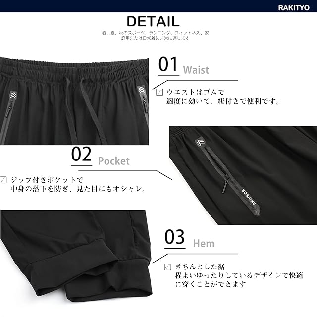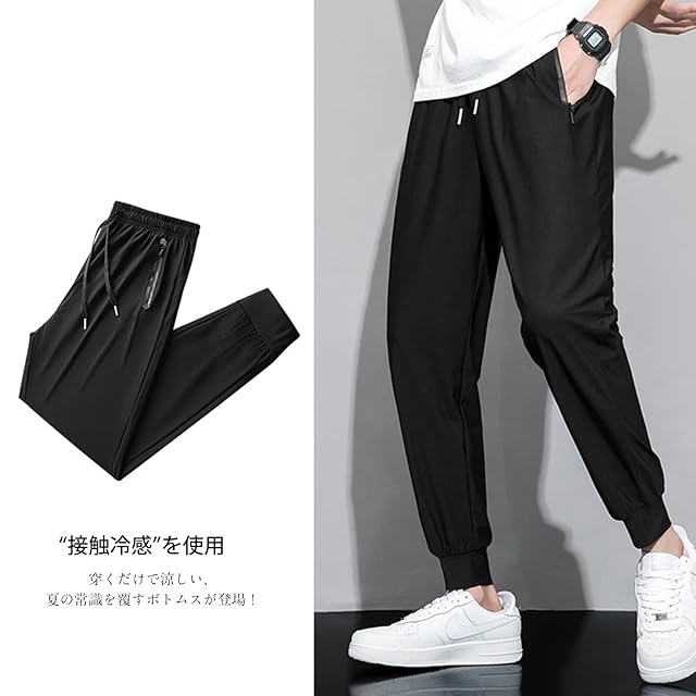 [Rakityo] メンズ ズボン 夏服 冷感パンツ アイスシルクパンツ 9分丈 ロング パンツ 接触冷感 薄手 涼しい 調整紐 ストレッチ おしゃれ 夏 春 秋