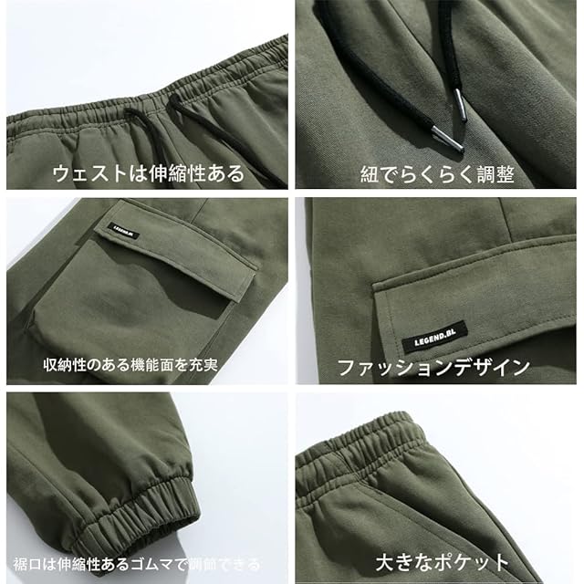 [Maioule] カーゴパンツ メンズ ワークパンツ チノパン ビッグシルエット 作業服 ズボン ロングパンツ おしゃれ ジョガーパンツ 多機能 ゆったり ファション 大きいサイズ 春 夏 秋 オシャレ HL03(HL03-アーミーグリー-M)