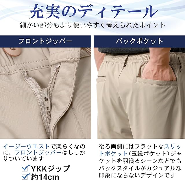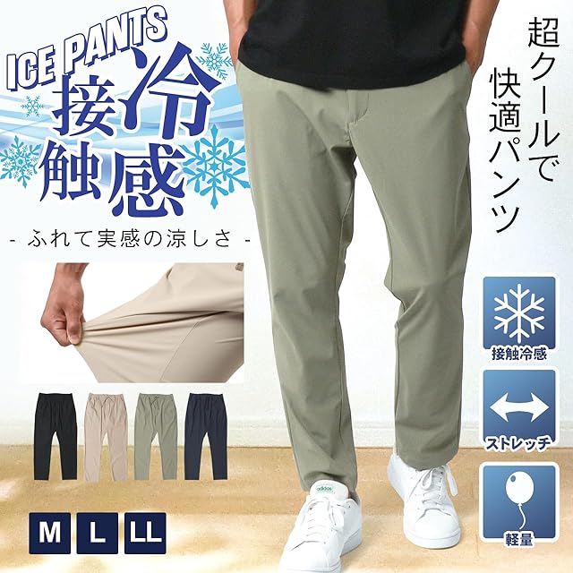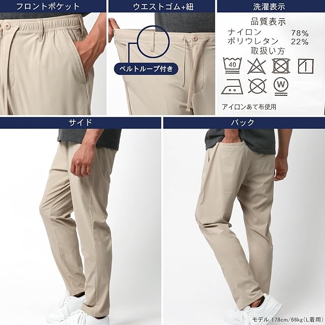 [エムアールユー] ストレッチパンツ メンズ 接触冷感 ゆったり ストレッチ M L LL 3L 4L 5L 6L 軽量 無地 イージーパンツ ズボン ベージュ2 6L