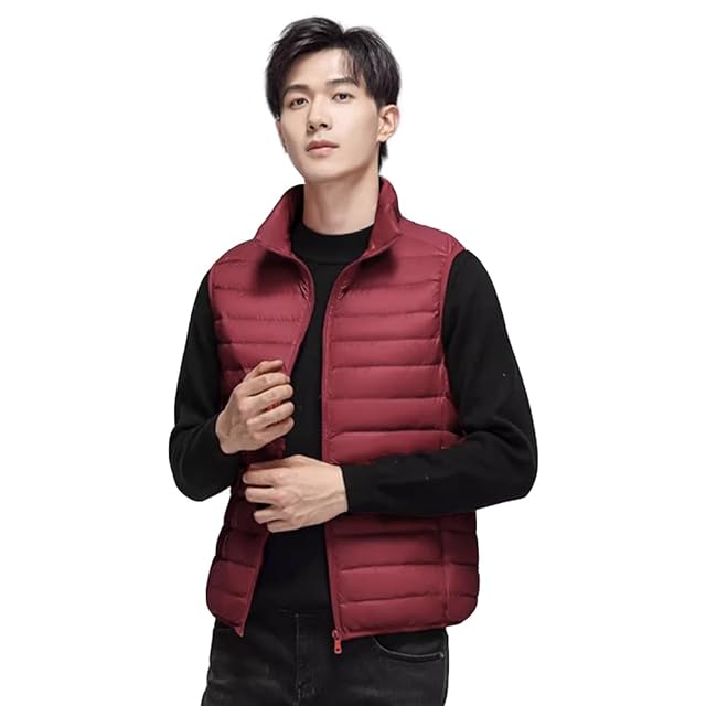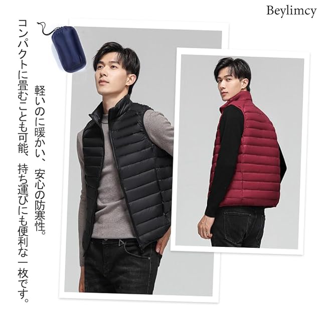 Beylimcy メンズ ダウンベスト ウルトラライト ダウン ベスト 無地 軽量 暖かい 防寒 秋冬 収納袋付き Bey51 (3XL, レッド)