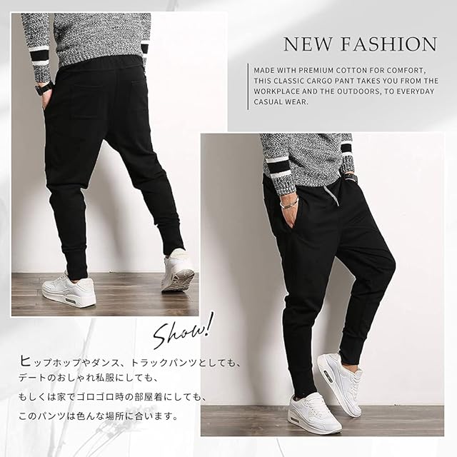 シンプルなシルエットでとても合わせやすく、トレンドのストリート系ファッションや大人気のカジュアルアメカジ系の装いにも、相性が抜群のメンズサルエルパンツです。ジョギング・ウォーキング・ストレッチ・ダンスなどのスポーツウェア・運動着としてはもちろん、ルームウェア・部屋着としてラフにオシャレに着こなせます!シンプルでスタイリッシュなので、デートやお呼ばれ仕事やオフィスにも!