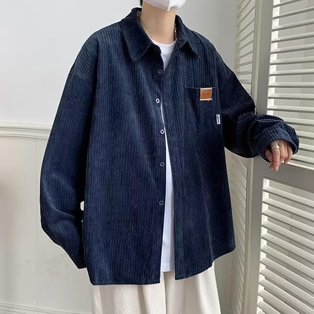 [FJLTDCP] シャツ メンズ 長袖 コーデュロイ生地 春秋冬服 大きい サイズ トップス カジュアル ゆったり かっこいい シンプル オシャレ 人気 春秋冬服 -blue-2XL