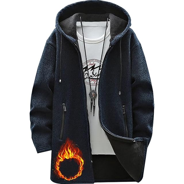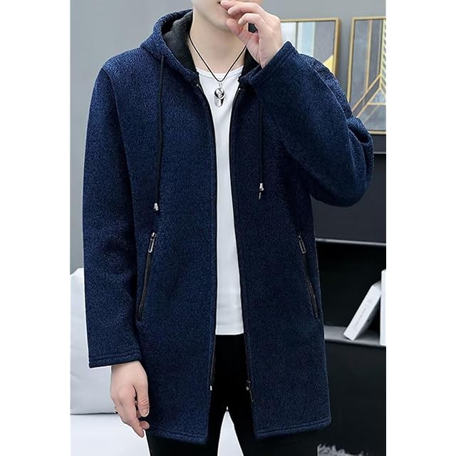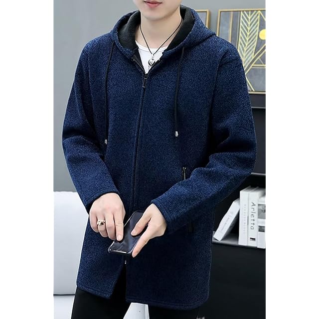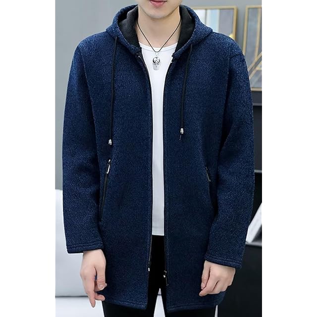 [Bligo] ジップアップ パーカー メンズ コート 冬服 カーディガン フード 付きネック 厚手 裏起毛 暖かい 大きい サイズ ゆったり ニット アウター シンプル オシャレ カットソー 柔らかい 無地 快適 Blue-XL