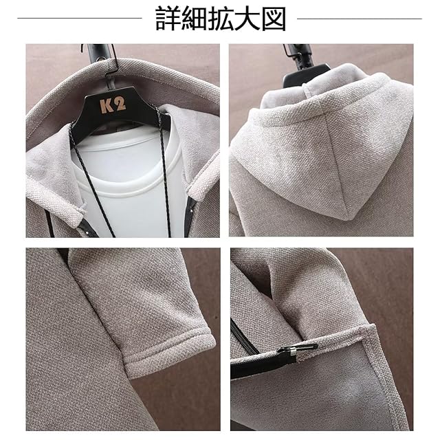 【実用的なカーディガン】とても実用的なニット・カーディガンで、両サイドにジッパー付きポケットがあり、小物を簡単かつ安全に収納できる。 シンプルなデザインが、適度なスタイルを演出する。内側に起毛素材を使用しているので、着心地はソフトで暖かく、肌触りがよく、防寒性も高い。フードは厚手で型崩れしにくく、ボリュームのあるシルエットを演出。首周りにボリュームがあるので、フロントジップを開けてもジップを閉めても顔周りもすっきり見え、その日の気温や室温、気分に合わせて着こなすことができる。