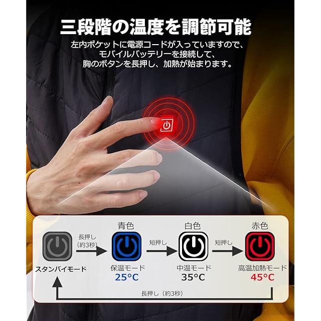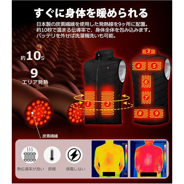 電熱ベスト メンズ レディース バッテリーなし (ブラック,3XL)