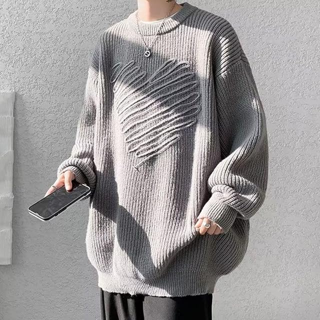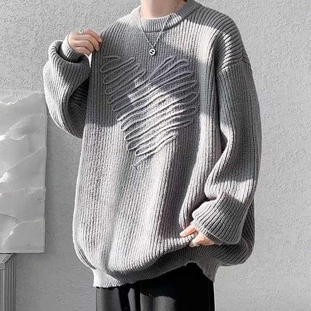 [KOTRBOY] メンズ セーター ニット丸首のセーター 長袖 無地 カジュアル 防寒 暖かい 柔らかい メンズニット 秋冬服 -gray-XL