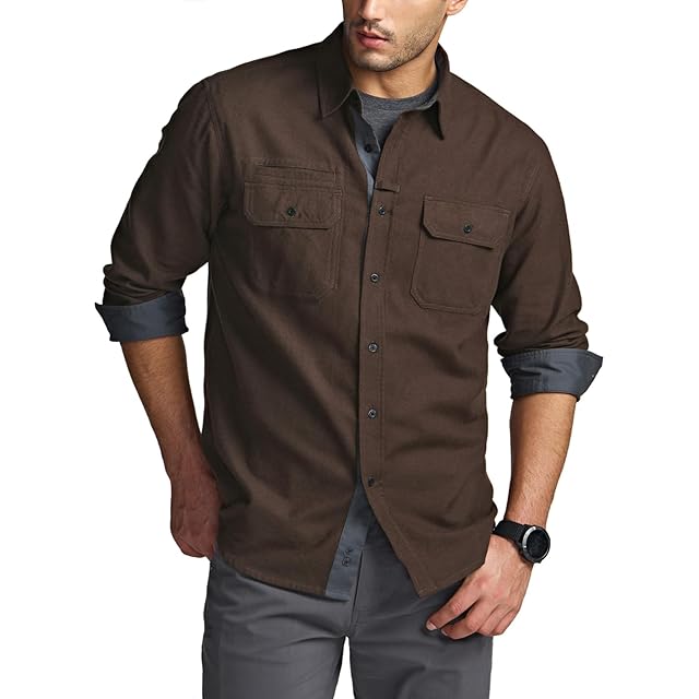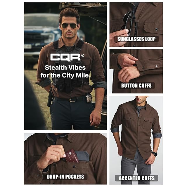 [CQR] シャツ 長袖 メンズ レギュラーフィット [保温・厚手・耐久性] フランネル 冬 無地 ネルシャツ ポケット付き 綿100 アウトドア 登山 キャンプ ゴルフウェア アメカジ 春 秋 CQ-HOF103-JPDBN_XL