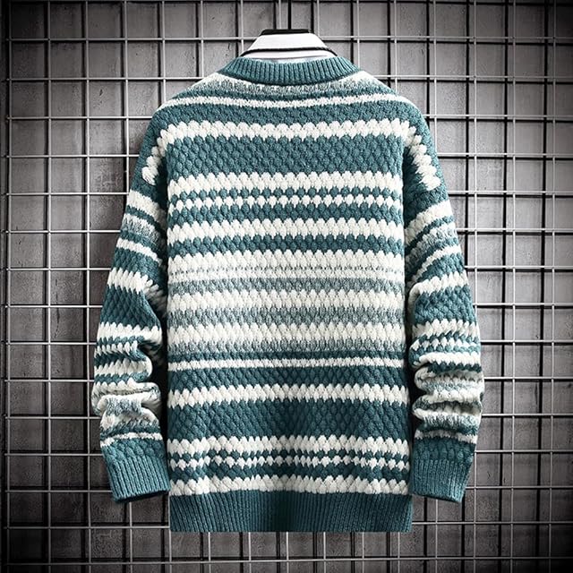 [Aaronlive] セーター メンズ 冬服 メンズ ラウンドネック 長袖 ニット トップス カジュアル 大きいサイズ 暖かい 厚手 防寒 カジュアル セーター メンズ 春秋冬 ニット メンズ blue XL