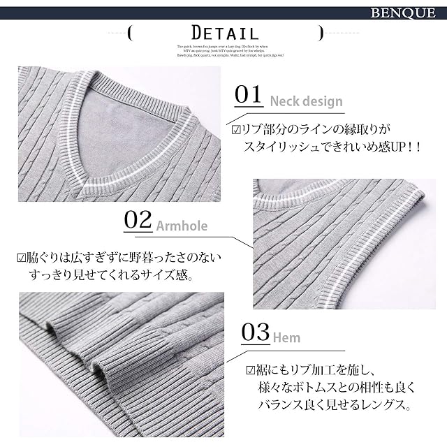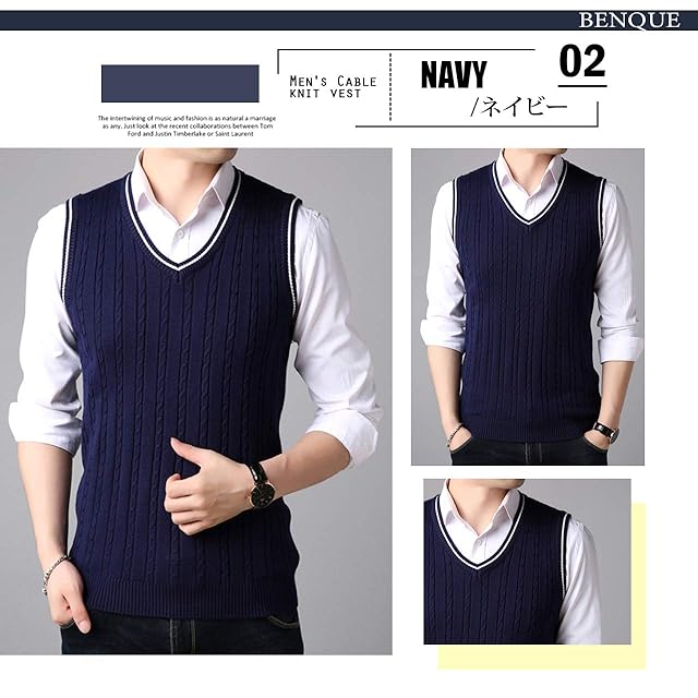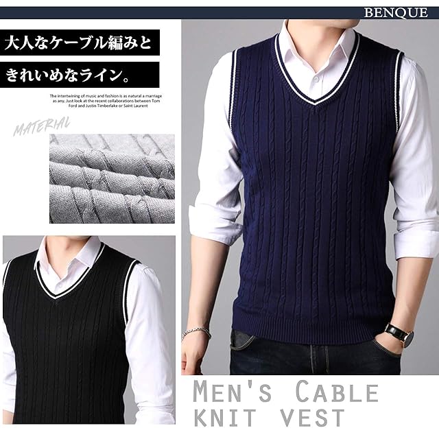 ✅普段のコーディネートに取り入れるだけで周りと差がつくお洒落なベストです。ビジネスにもカジュアルにも使いまわせる使い勝手の良いケーブル編みニットベストです。