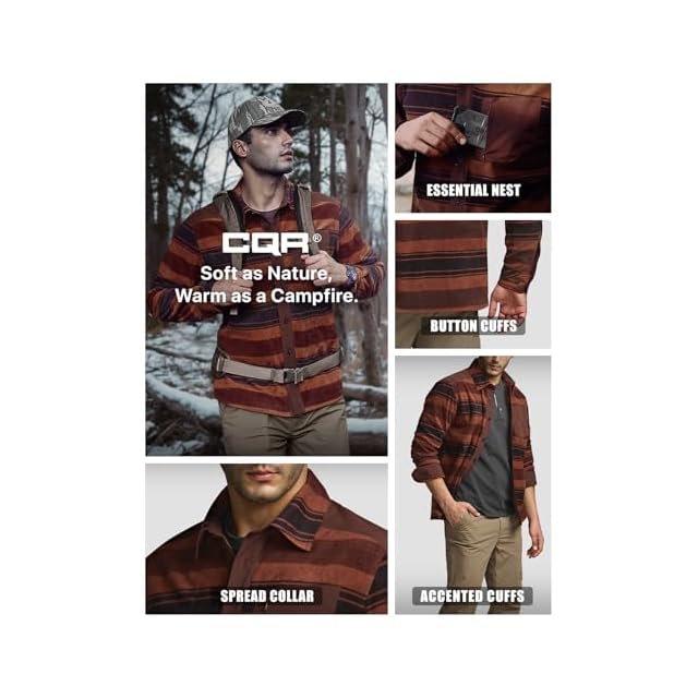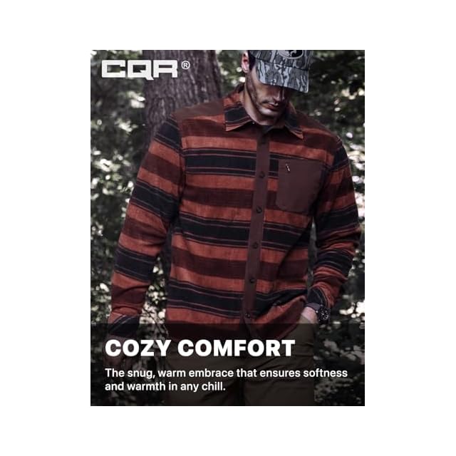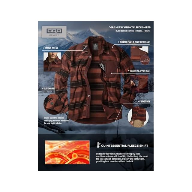 [CQR] フリースシャツ 長袖 メンズ [耐久性・保温] チェック 春 秋 冬用 シャツジャケット ワークシャツ キャンプ アウトドア 登山 カジュアル フリース シャツ 厚手 胸ポケット 腕ポケット ボタン付き 大きいサイズ HOS217-ATN_3XL