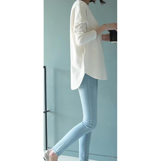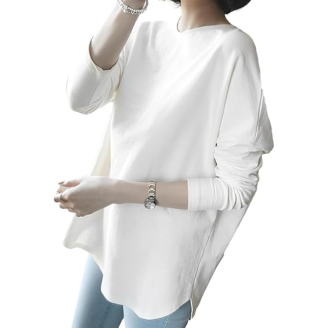 [エンプティオ] スリット シャツ トップス クルーネック 長袖 体型カバー エクササイズ カットソー ユッタリ 通勤 レディース ユル ロンt カワイイ 丸首 ゆる オーバー レイヤード アウトドア ウェア ストリート ヒップホップ フェミニン メクレナイ ヨガ ジムウェア ウォーキング エアロビクス ウォッシャブル 涼しい フィットネス 韓国ファッション ジム スポーツ (XL) ホワイト