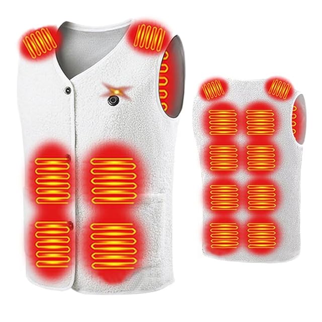 [Yucahype] 16箇所発熱 電熱ベスト フリース 男女兼用 20000mAhバッテリー付き選択可 電熱インナー 大きいサイズ USB ワンボタン制御 3段温度調節 ヒーターベスト ヒートベスト 防寒ベスト バイク ゴルフ メンズ レディース(4XL ホワイト)