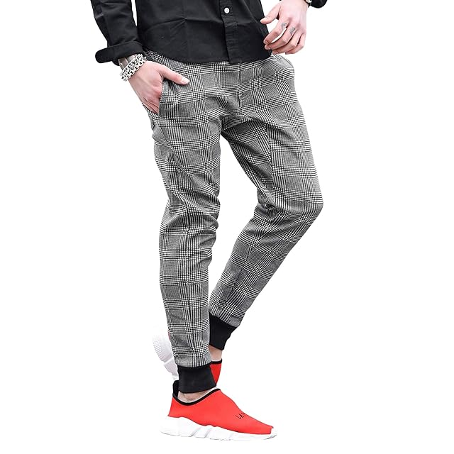 [ルービック] ジョガーパンツ メンズスウェット パンツ 細身 ストレッチ パンツ スウェット 2タイプ タイトジョガー/ちょいユルカーゴジョガー スウェットパンツ joker S グレンチェック